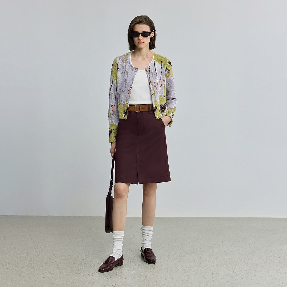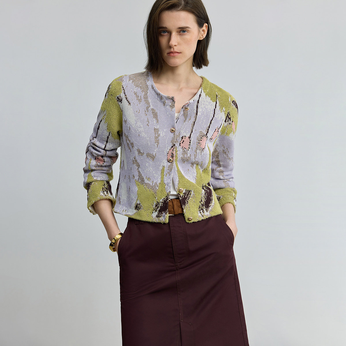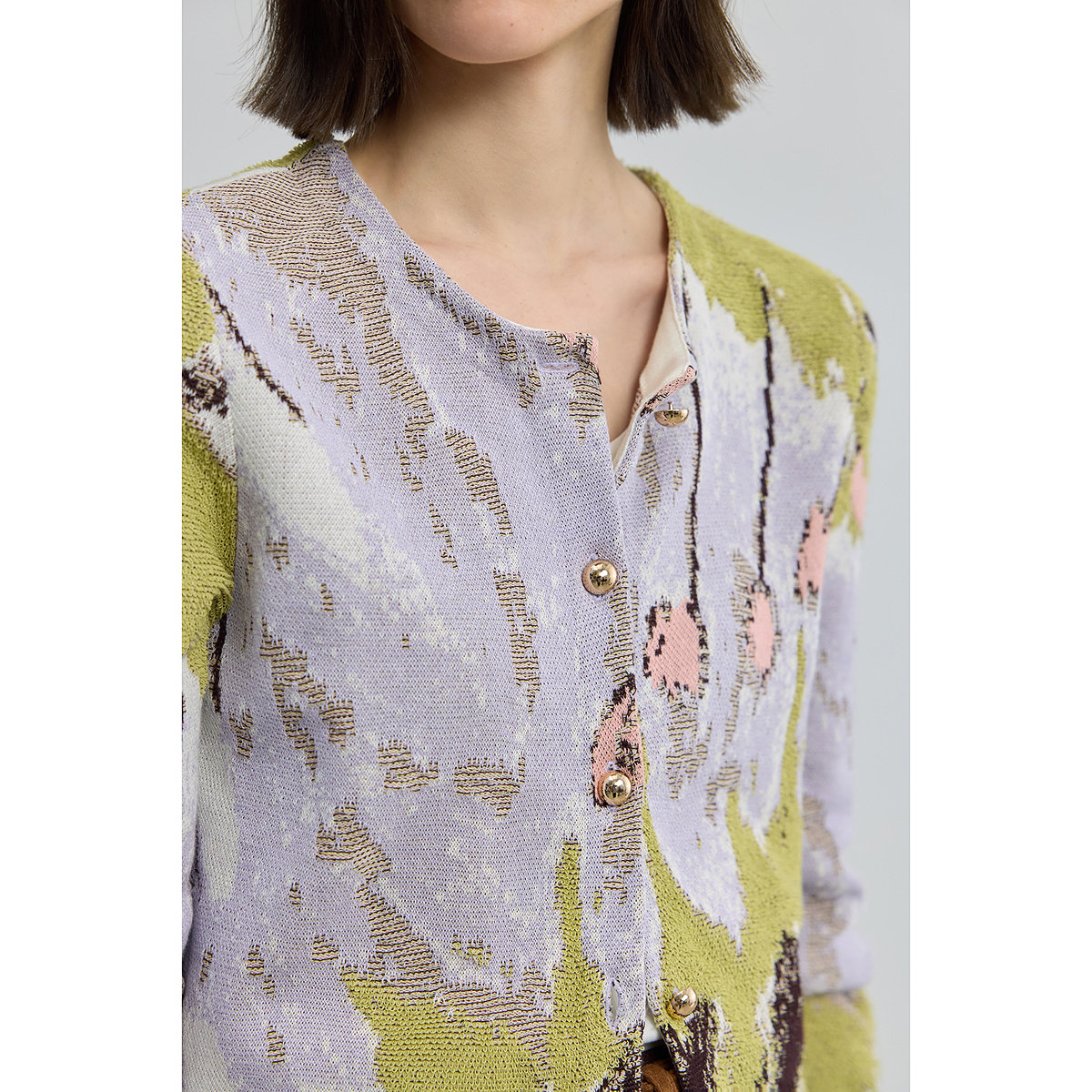 LILY设计感全棉女装提花圆领开衫