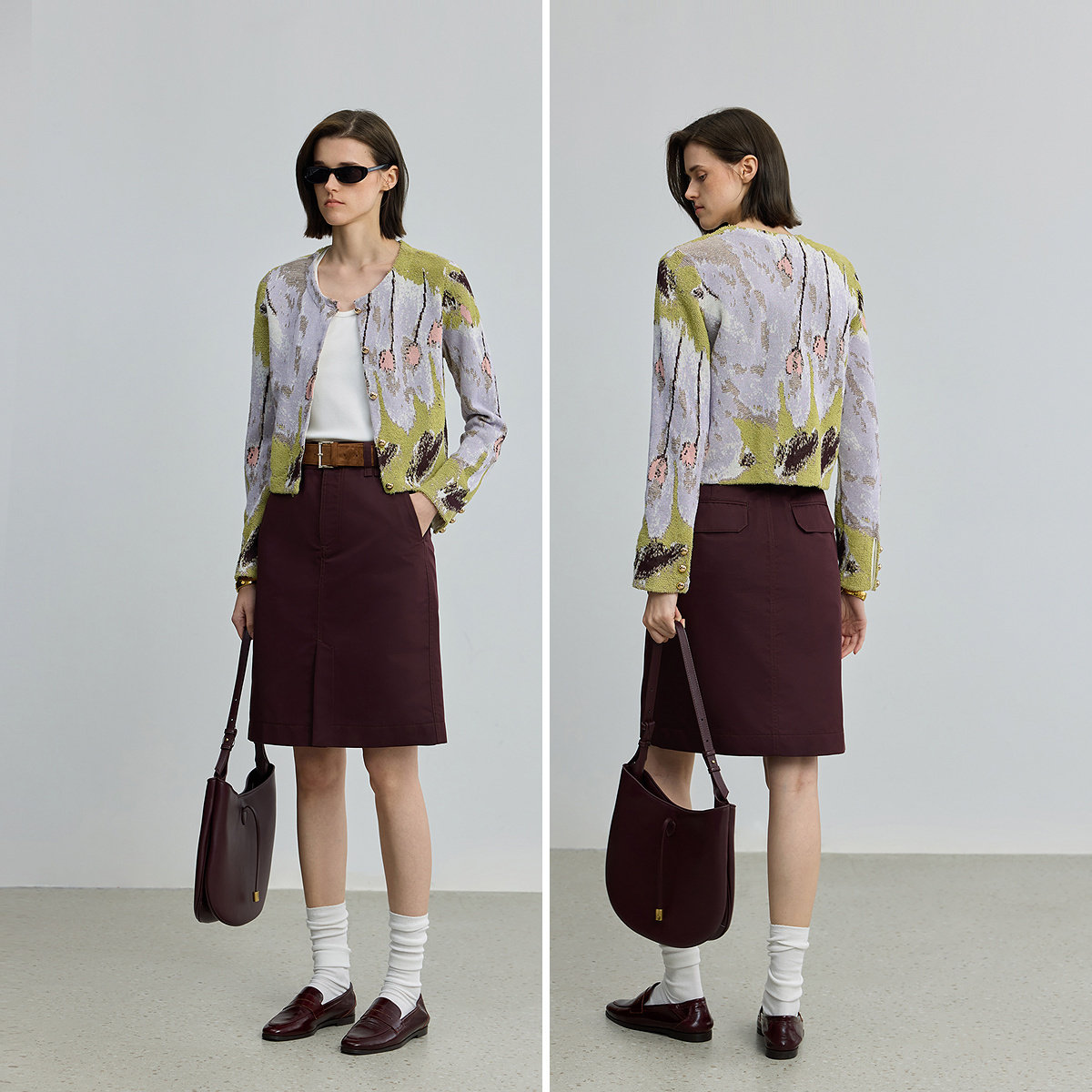 【商场同款】LILY2025新款女装全棉设计感提花圆领针织开衫外套