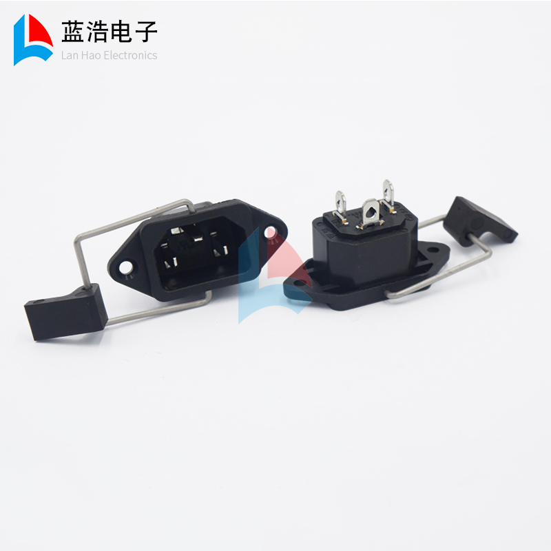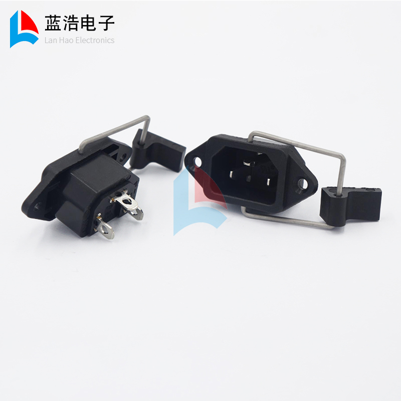 全铜C14品字插座防脱带卡扣三插电动车充电口3芯电脑机箱电饭煲座