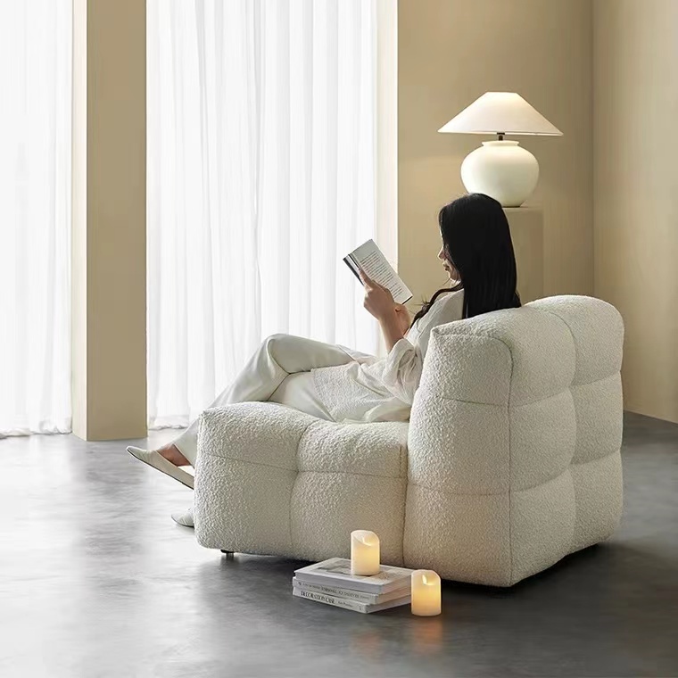 棉花糖单人沙发小户型奶油客厅阳台休闲躺椅复古面包布艺懒人沙发