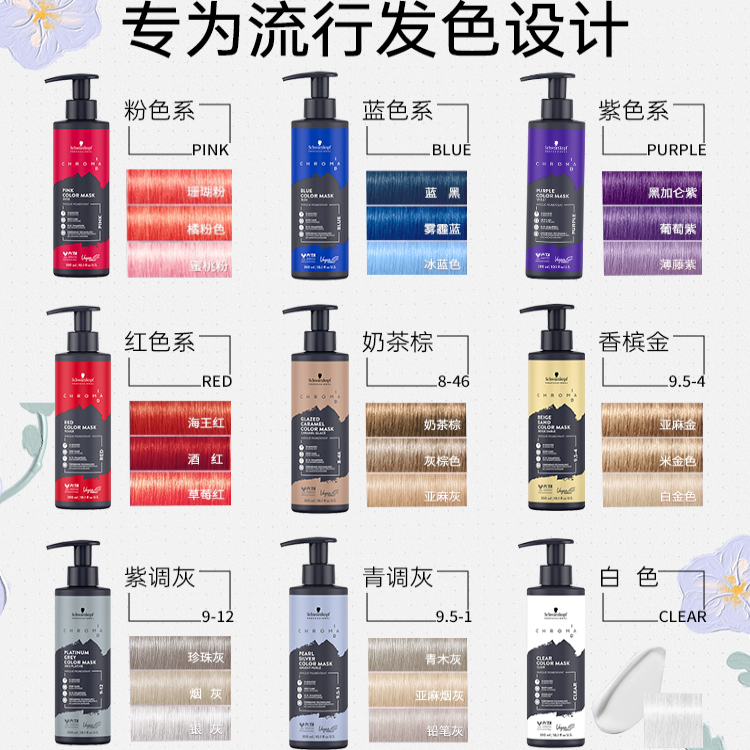 施华蔻去黄洗发水固色发膜护发素补色护色酸性染色染发膏蓝色红色