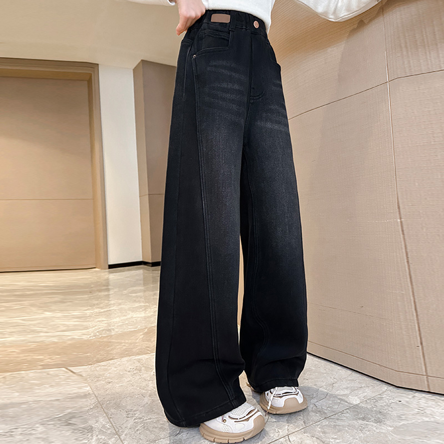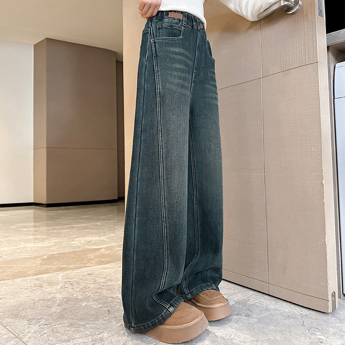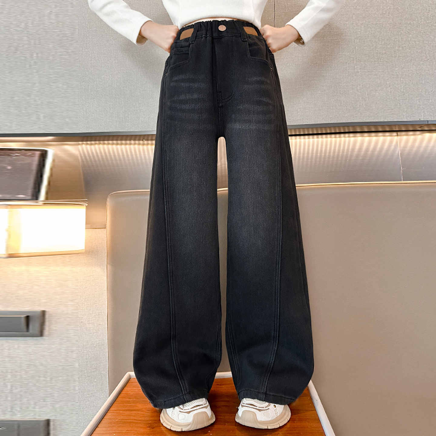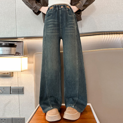 女童秋装牛仔裤2025新款女大童秋季休闲阔腿裤儿童春秋款直筒长裤