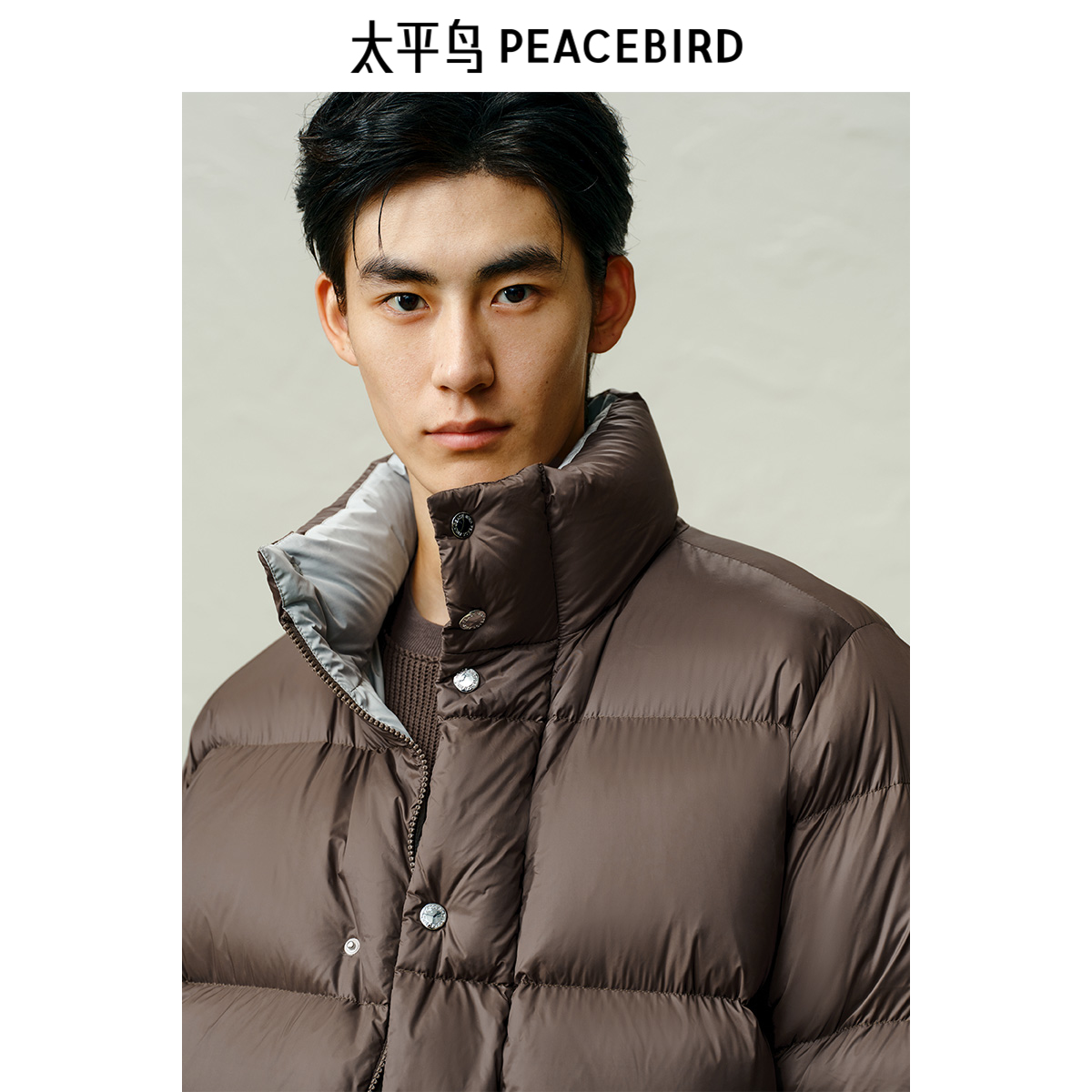 【高充绒量】太平鸟男装 面包服男冬季内里拼色立领防寒羽绒服Y