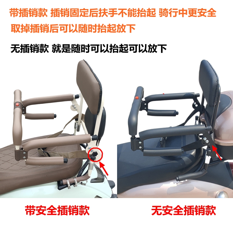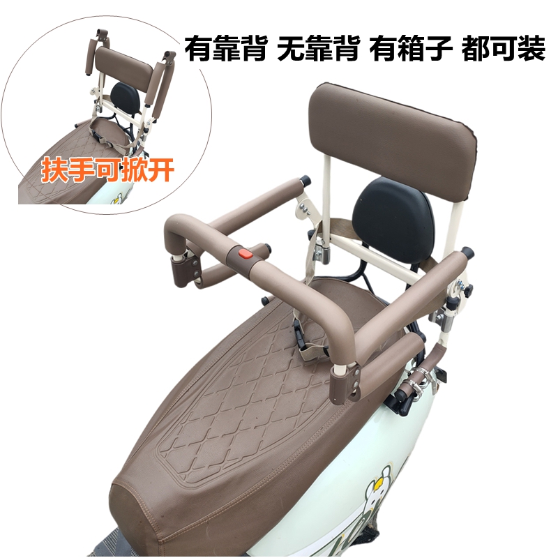 电动摩托车儿童座椅后置围栏可掀开小孩安全后坐椅宝宝踏板车扶手