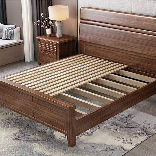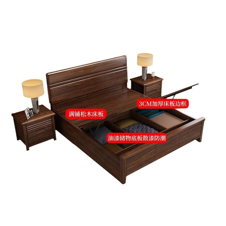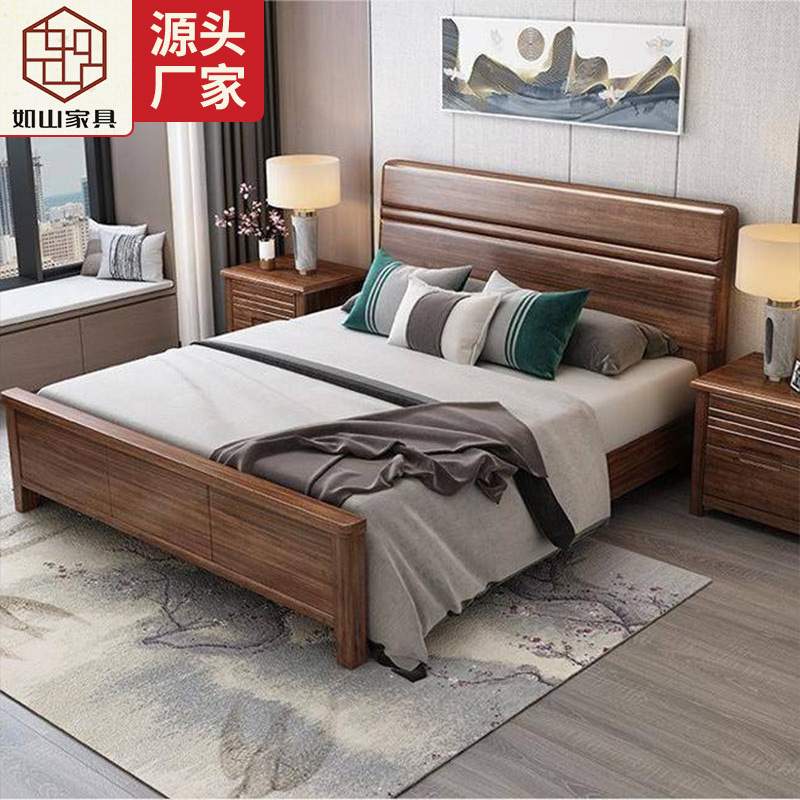 新中式简约胡桃木实木床经典家用1.8米1.5双人床小户型1.2单人床