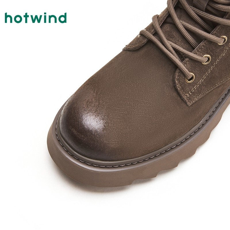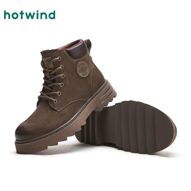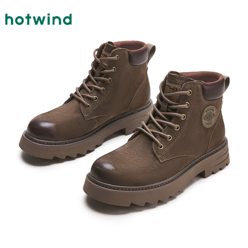 热风男鞋冬季新款男士复古户外登山工装靴子厚底个性马丁靴