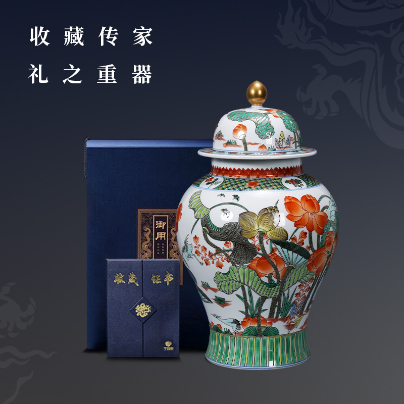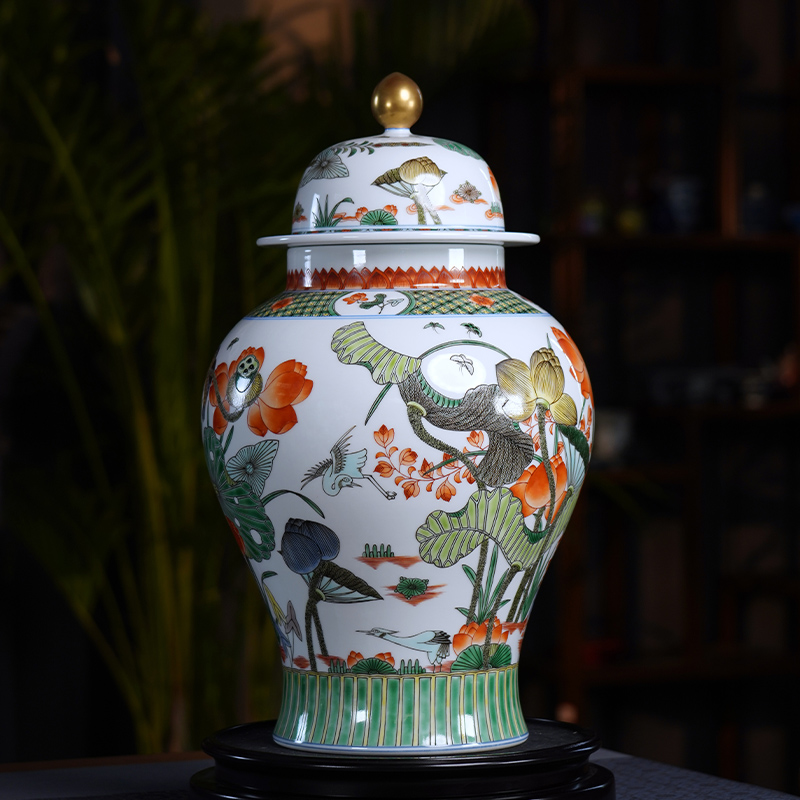 仿清康熙五彩一路连科将军罐景德镇陶瓷装饰罐大号储茶罐茶仓装饰