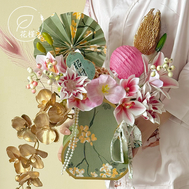 2025新款年宵节福桶 福禄桶仿真花插花盒新春抱抱桶手工diy礼品盒