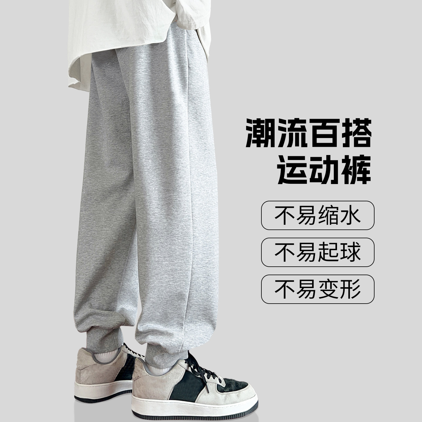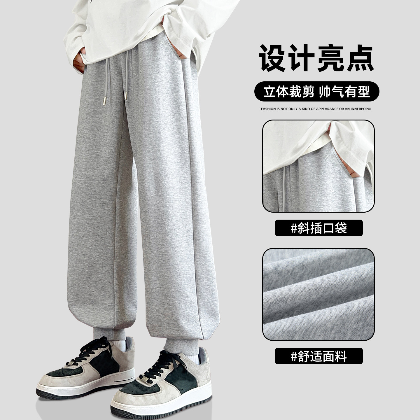 回力黑色裤子男款秋季新款休闲垂感收脚裤男生宽松大码直筒卫裤A