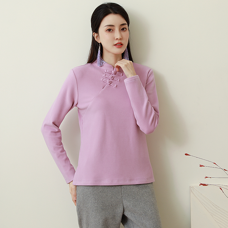中国风T恤复古德绒盘扣打底衫长袖上衣秋冬新款加厚中式唐装茶服