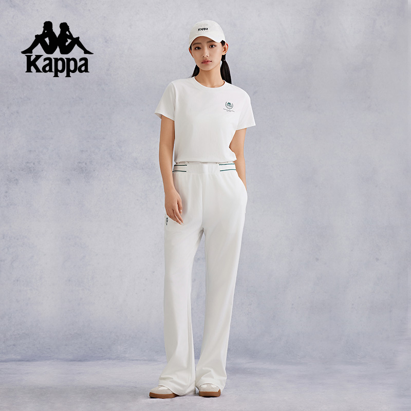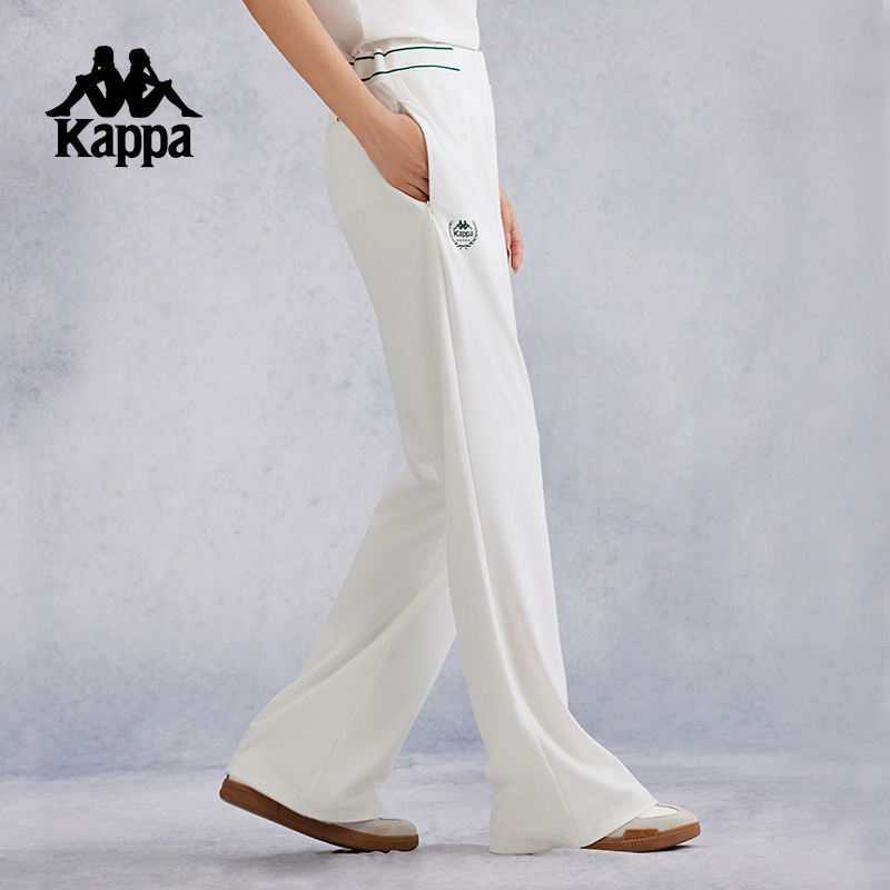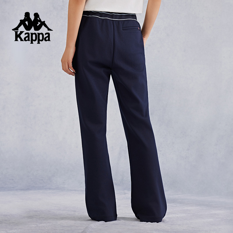 Kappa卡帕背靠背新款复古针织运动长裤喇叭裤休闲裤修身裤子女裤