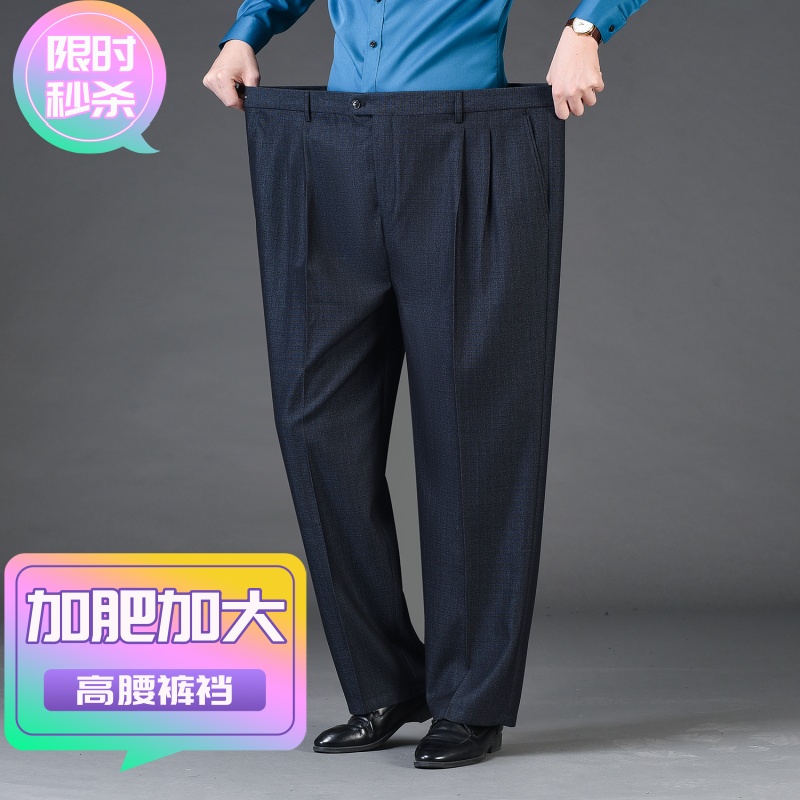 双褶西裤男加肥加大码中老年高腰深裆男裤商务免烫上班纯色长裤