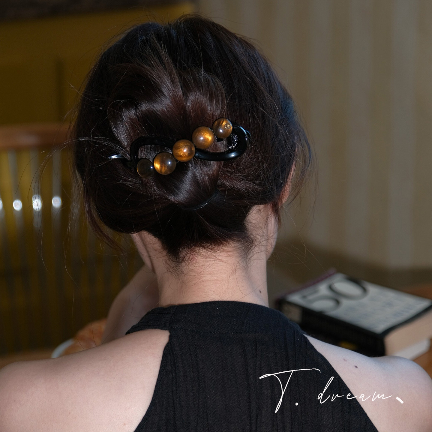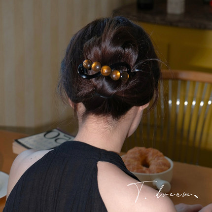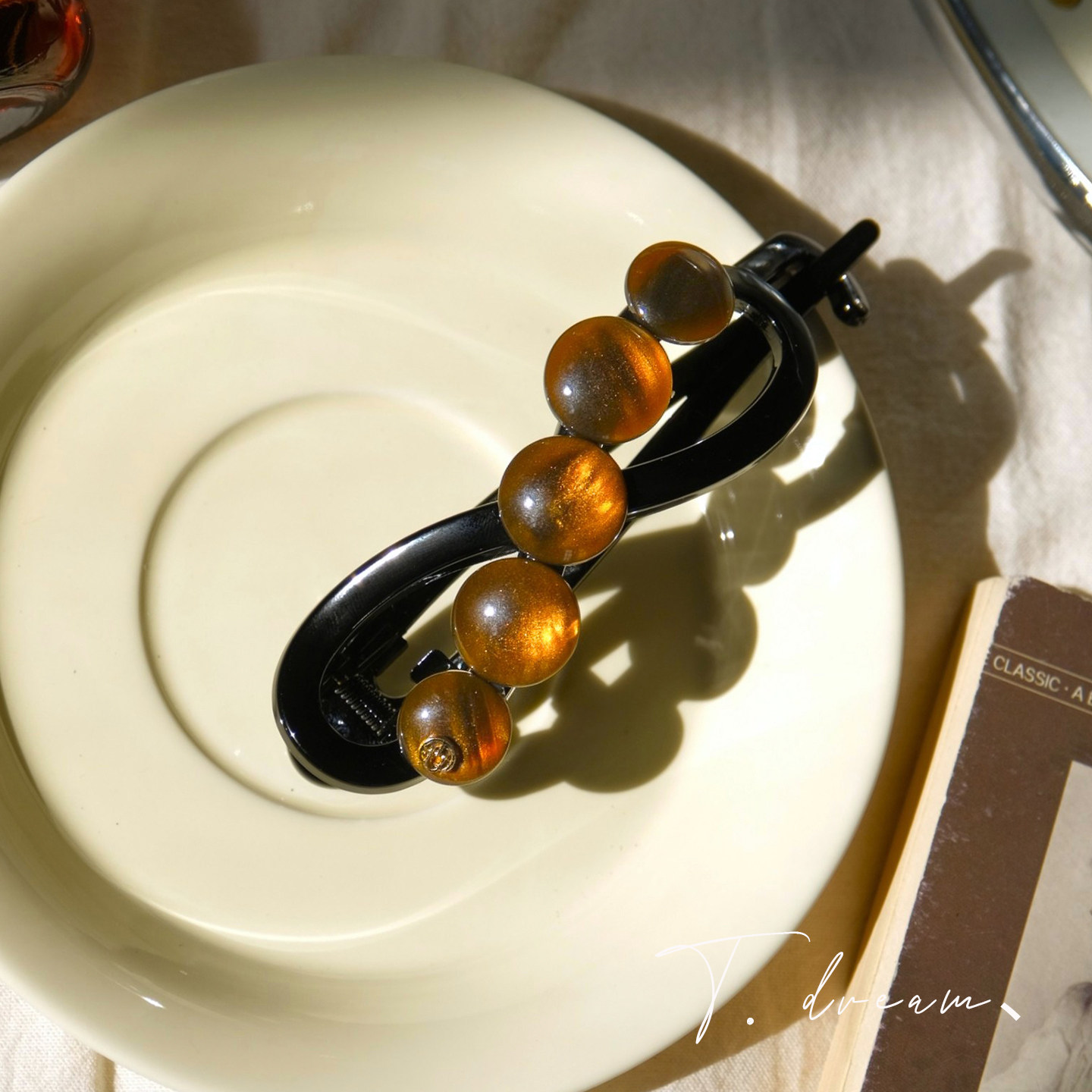 《蜜豆罐子》法式琥珀豆盘发马尾夹丸子头饰女后脑勺发饰扭扭发夹