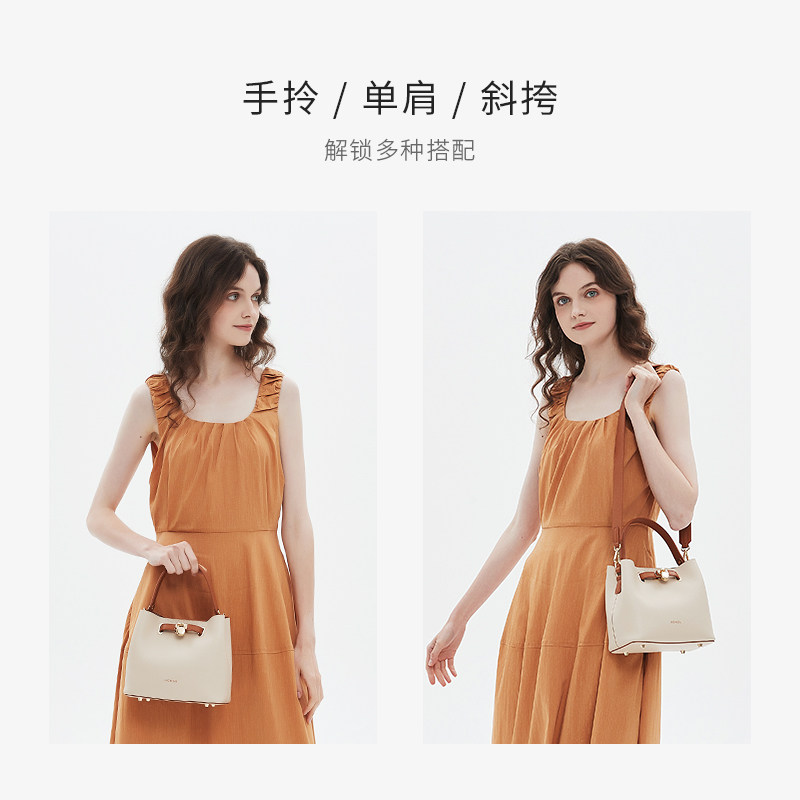 【高级感】红谷女包牛皮洋气质水桶包简约百搭单肩斜挎包手拎包潮