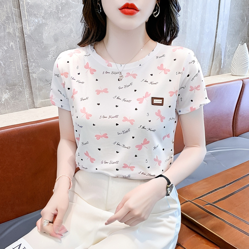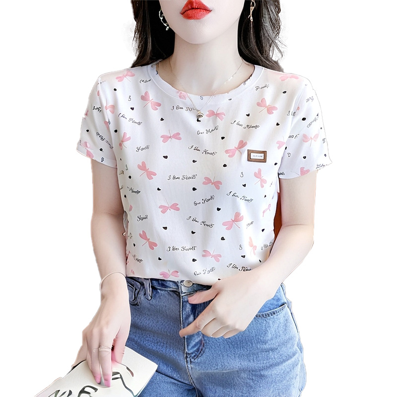 短袖t恤女上衣纯棉体恤圆领百搭