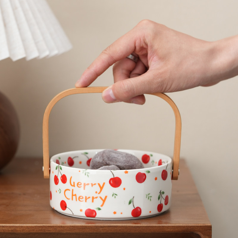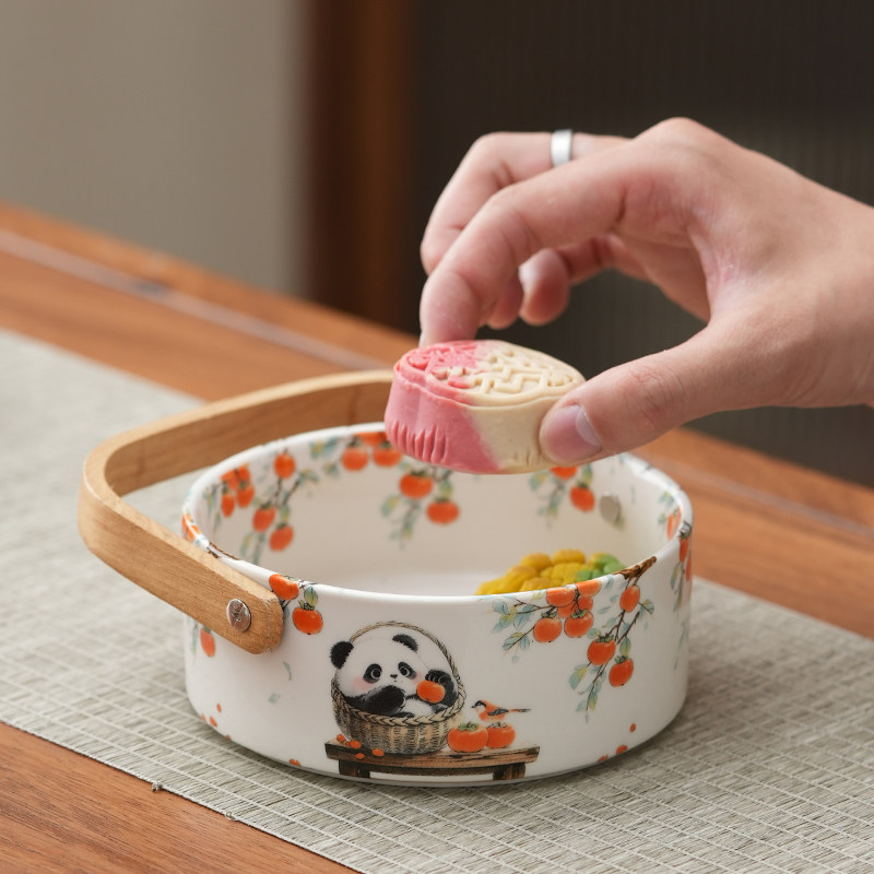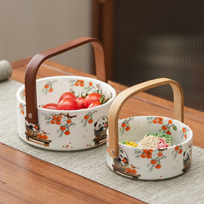 新款中式陶瓷手提篮复古桌面家用客厅茶几茶点盘高颜值精致水果盘