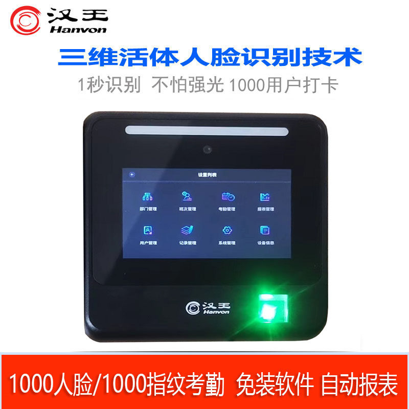 汉王D6人脸识别考勤签到员工打卡动态可见光人脸指纹汉王考勤机