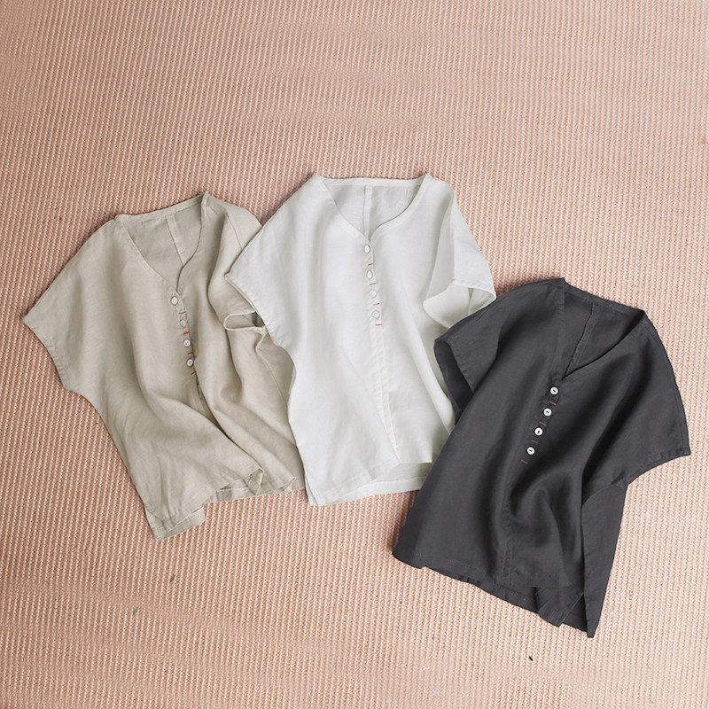 儿童汉服男女童亚麻宝宝中国风童装棉麻短袖夏季小孩宽松T恤衣服