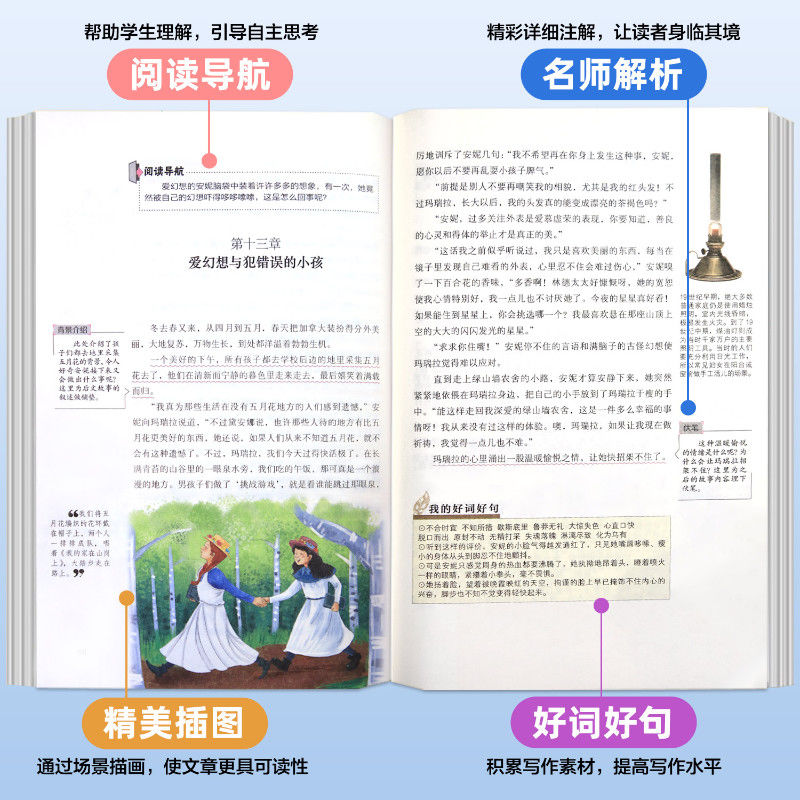 绿山墙的安妮正版全套4册阅读课外书柳林风声绿野仙踪呼兰河传四五六年级经典名著语文新课标书目必读故事文学昆虫记童话海燕读书