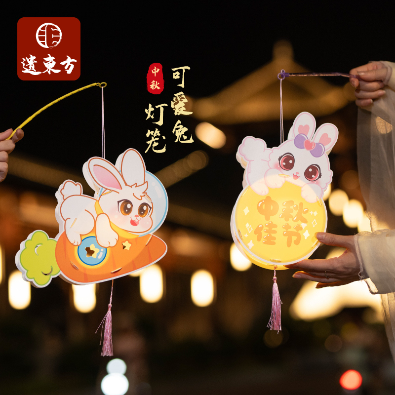 中秋节可爱兔灯笼玉兔子手工diy制作儿童材料包花灯古风非遗手提