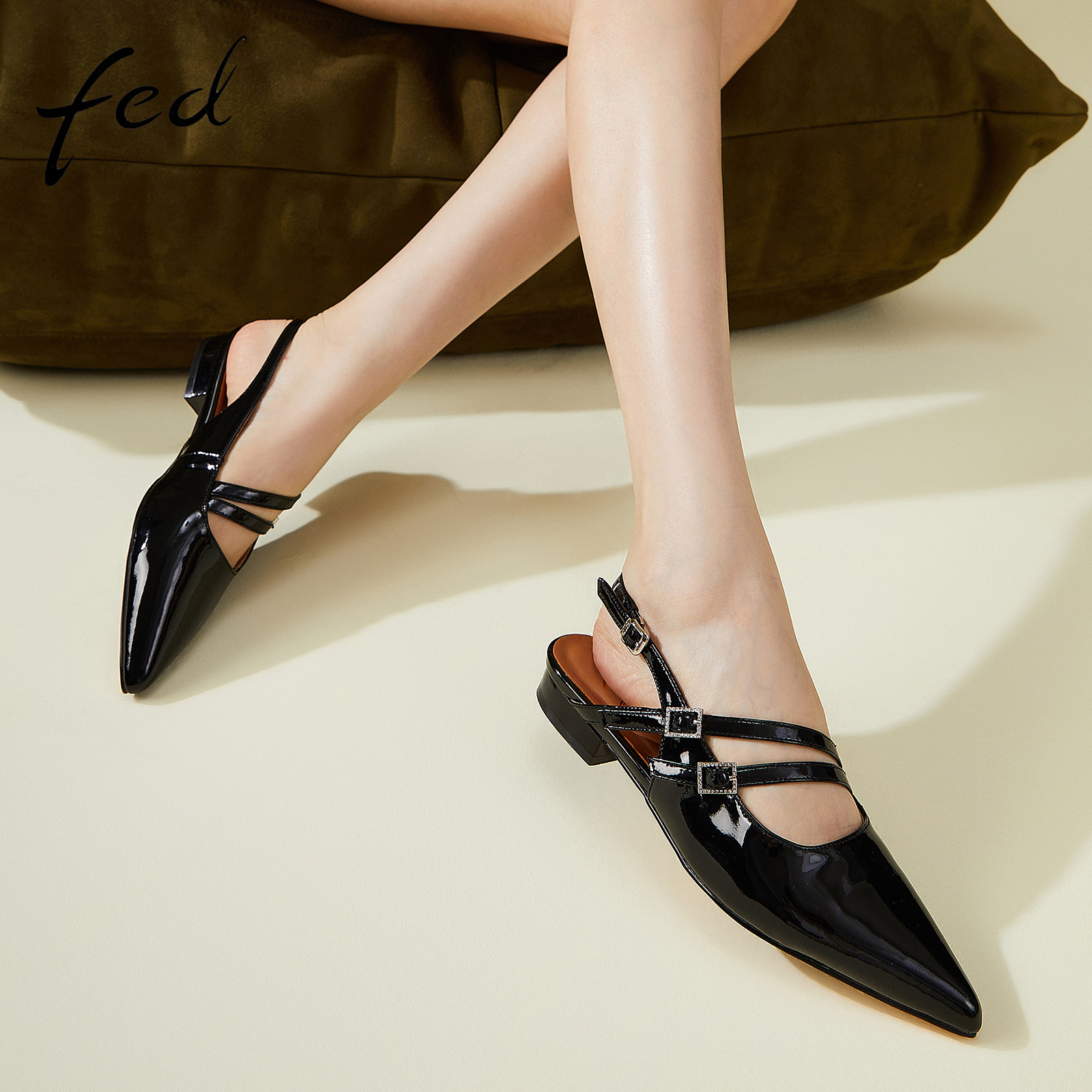 fed低跟穆勒鞋夏季新款女鞋后空单鞋气质真皮凉鞋女款D0509-ZF006