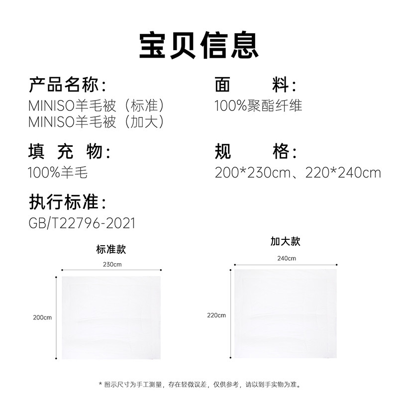 MINISO名创优品【A类贴肤锁温羊毛被】保暖被芯透气亲肤冬季被