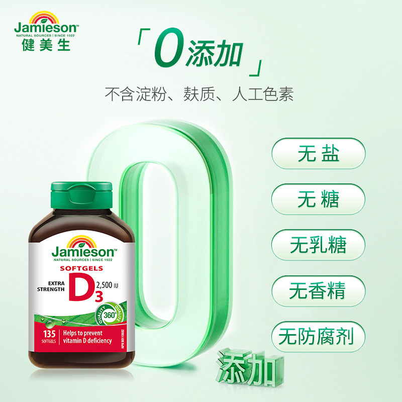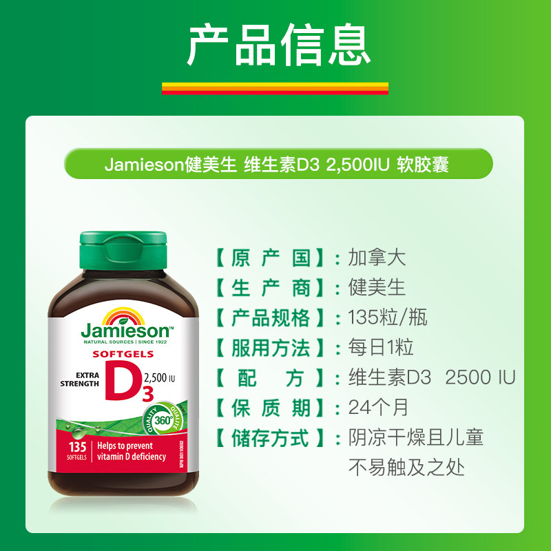 Jamieson健美生维生素D3 2500IU软胶囊VD3维他命保健品助钙吸收