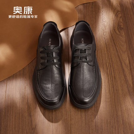 奥康 男鞋秋季新款休闲皮鞋真皮透气软底轻便系带圆头商务爸爸鞋