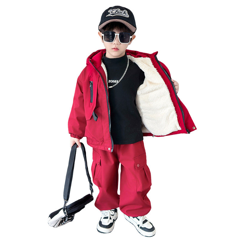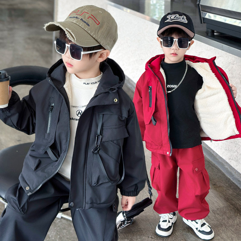 男童秋冬装套装2025新款加绒加厚儿童装男孩宝宝冬季工装保暖衣服