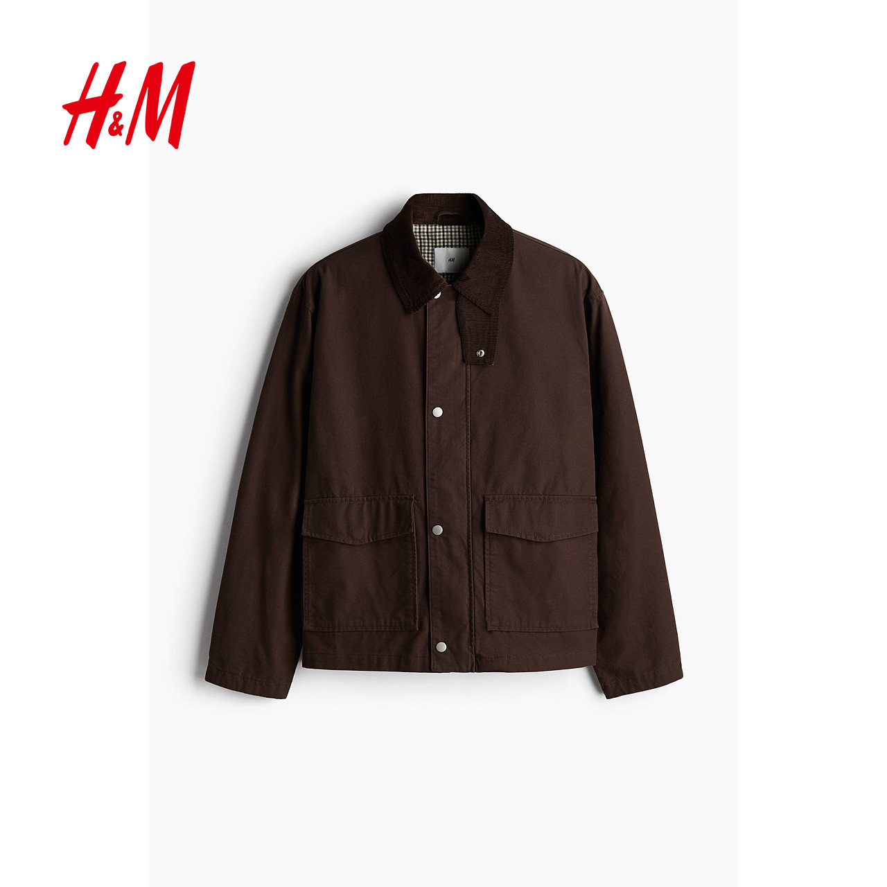 HM男装夹克冬巴恩风防风底特律户外帆布翻领拉链工装外套1235657