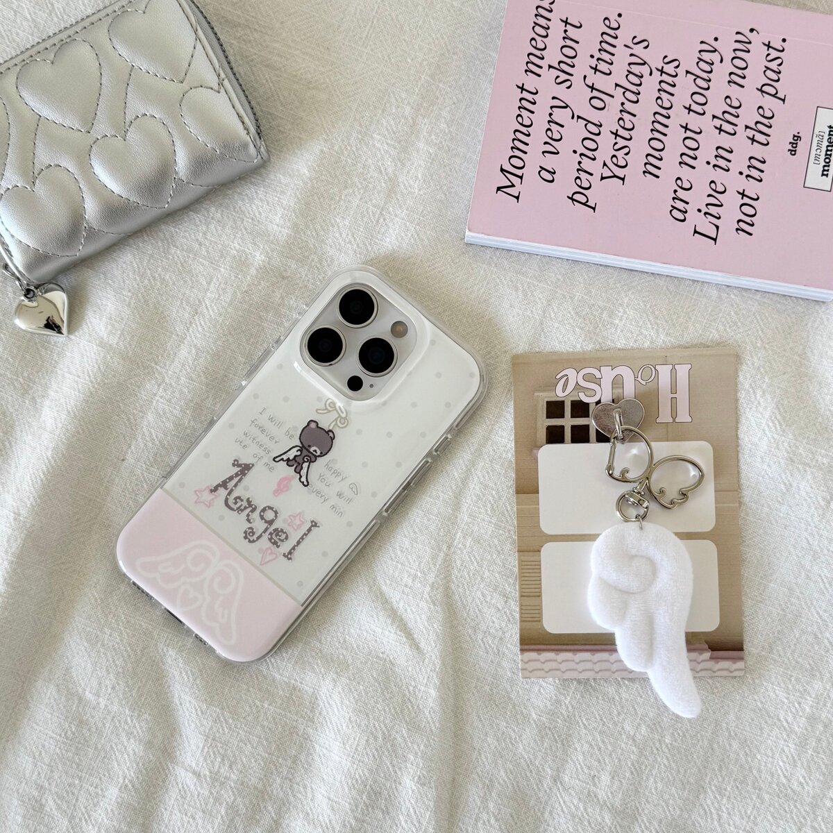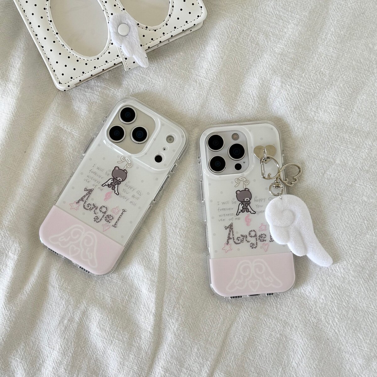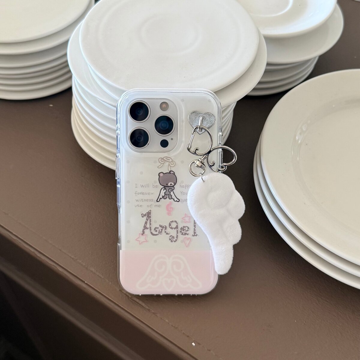 亚比天使小熊适用iPhone17promax苹果16手机壳15翅膀挂件14双层保护套波点可爱圆边新款