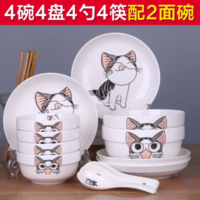 碗陶瓷家用可爱卡通盘子碗餐具碗碟套装创意儿童可爱猫饭碗