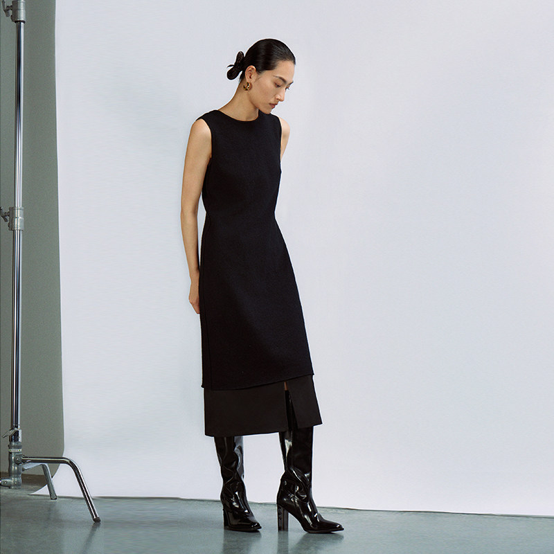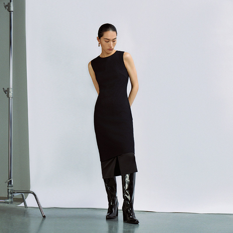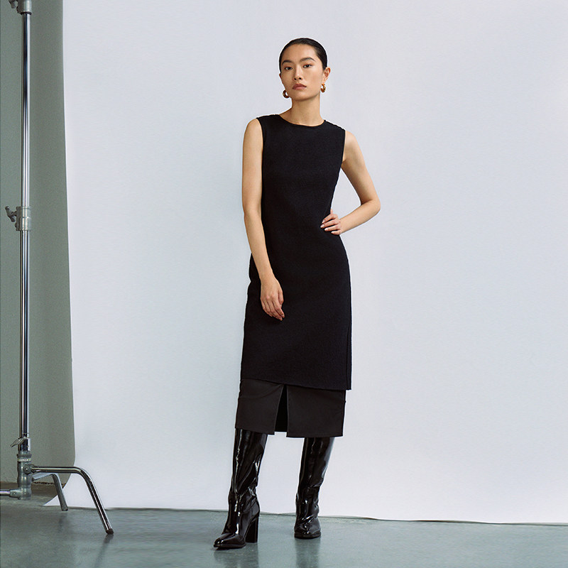 【折扣】INSPIRE STORIES 黑色假两件无袖中长裙背心裙