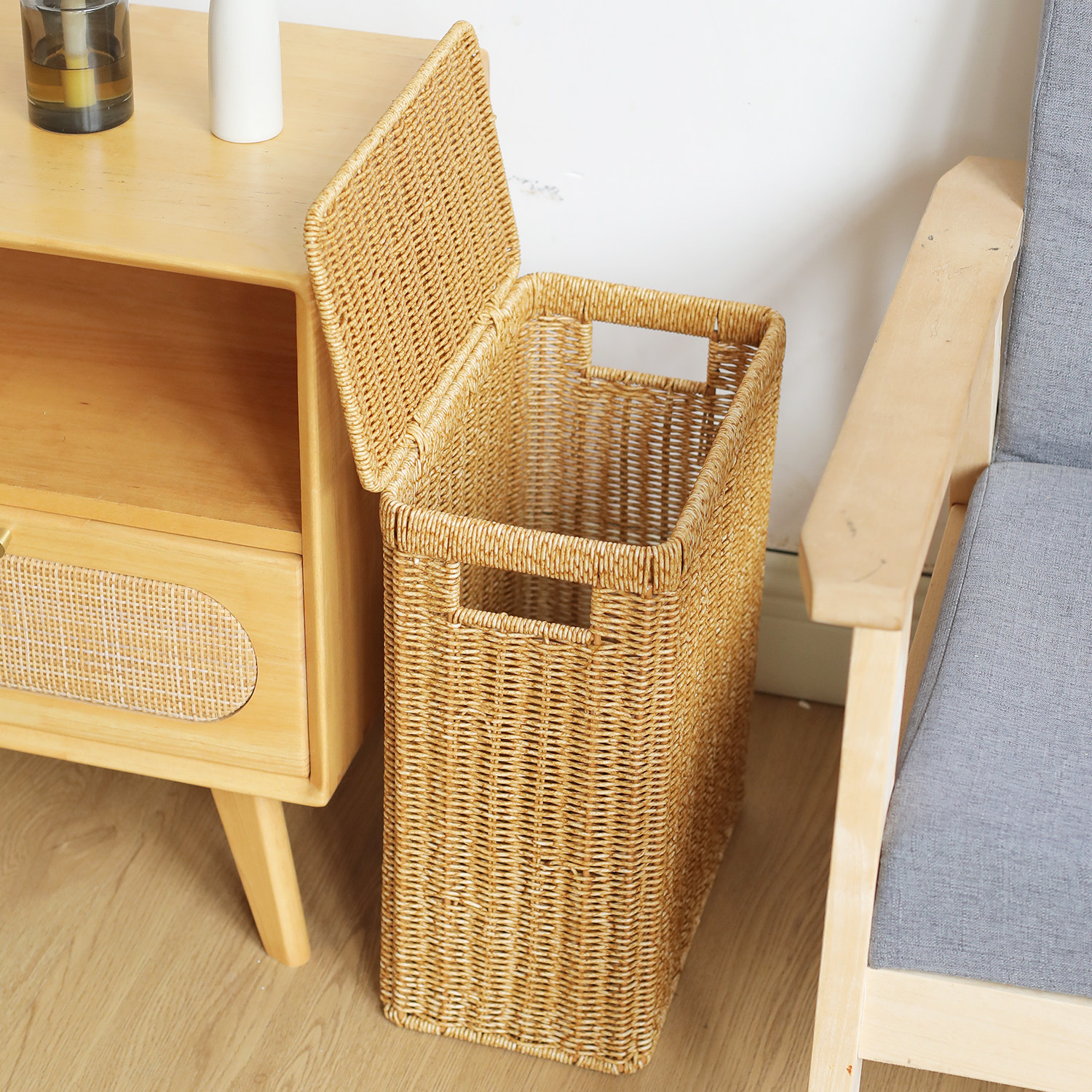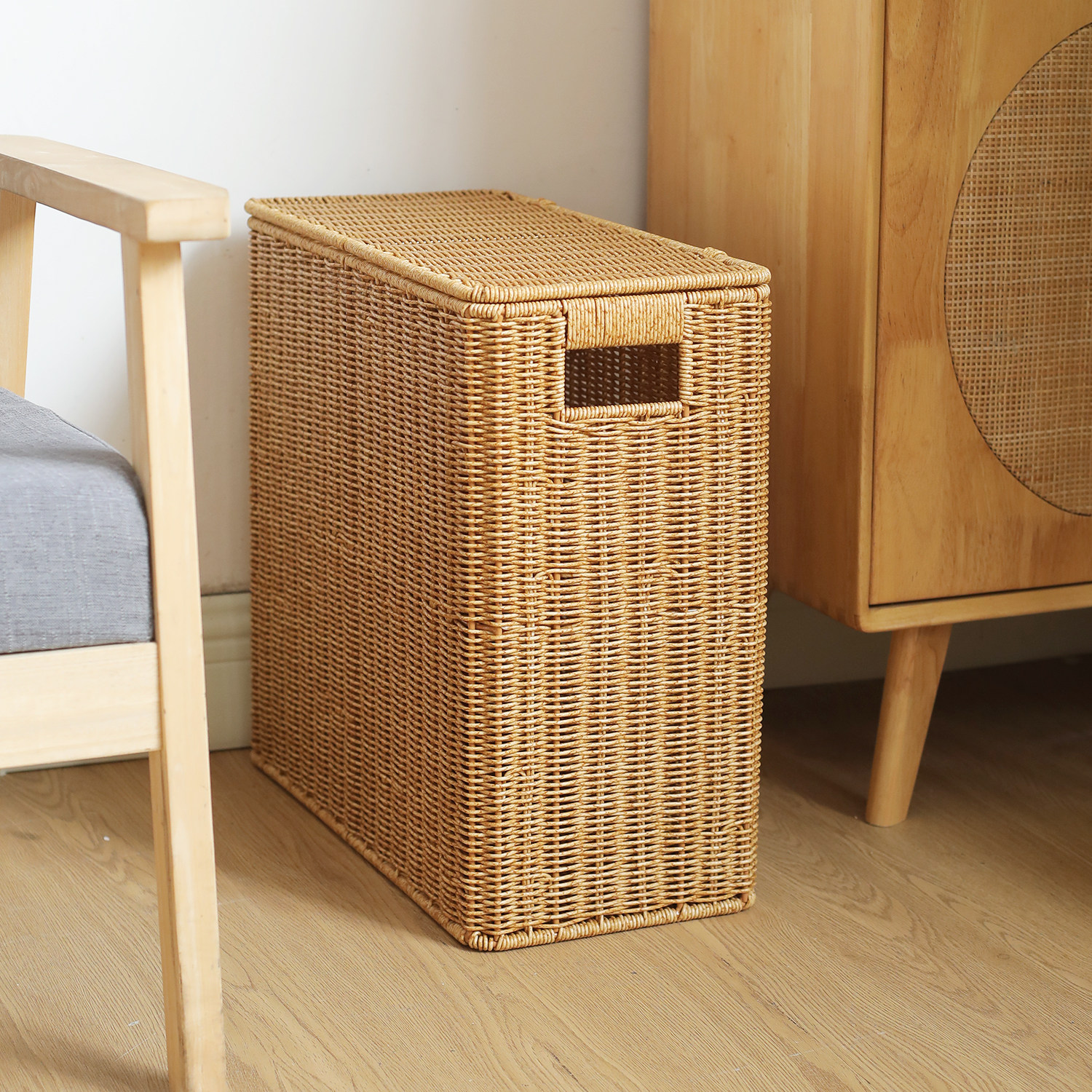 收纳箱长条窄型带盖子沙发边角整理箱客厅玩具杂物夹缝储物箱高深