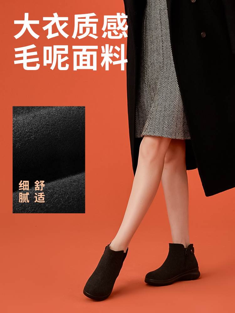 Pansy日本短靴女休闲百搭单靴轻平底高帮鞋拉链秋冬季4119舒适鞋