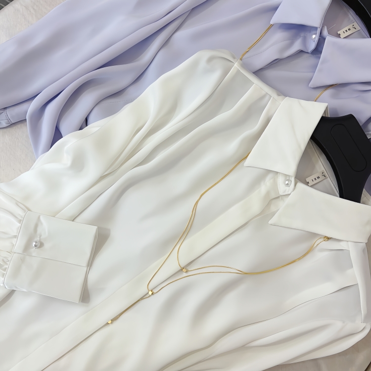 项链尖领醋酸缎面宽松白衬衫女