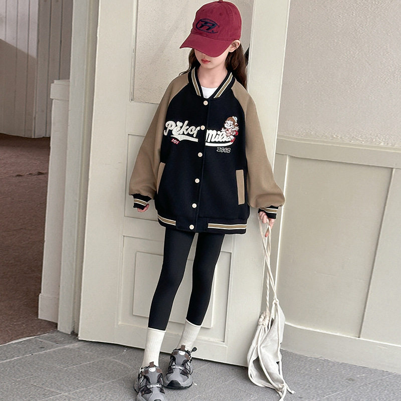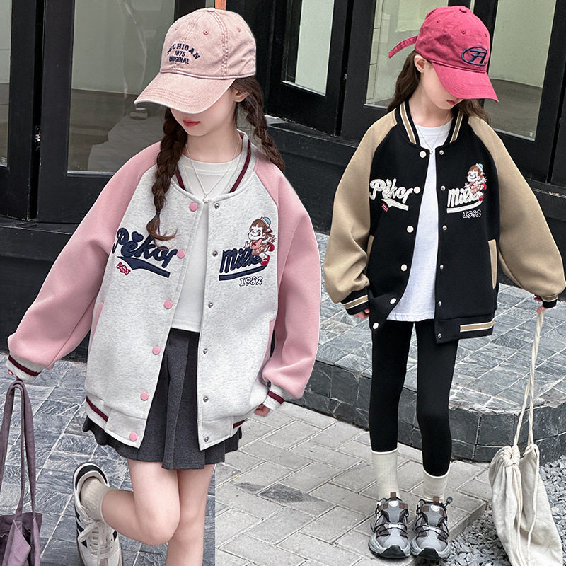 女童春秋外套洋气女孩子衣服中大童秋冬休闲棒球服女学生加绒上衣