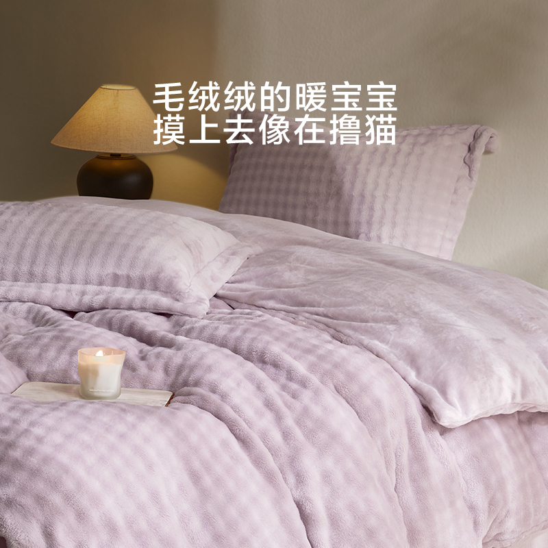 罗莱家纺秋冬新品长毛绒慕斯绒双面暖绒加厚床单被套双人床四件套