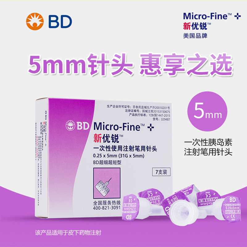 新优锐BD一次性使用注射针头0.25*5mm31G家用胰岛素笔诺和针头