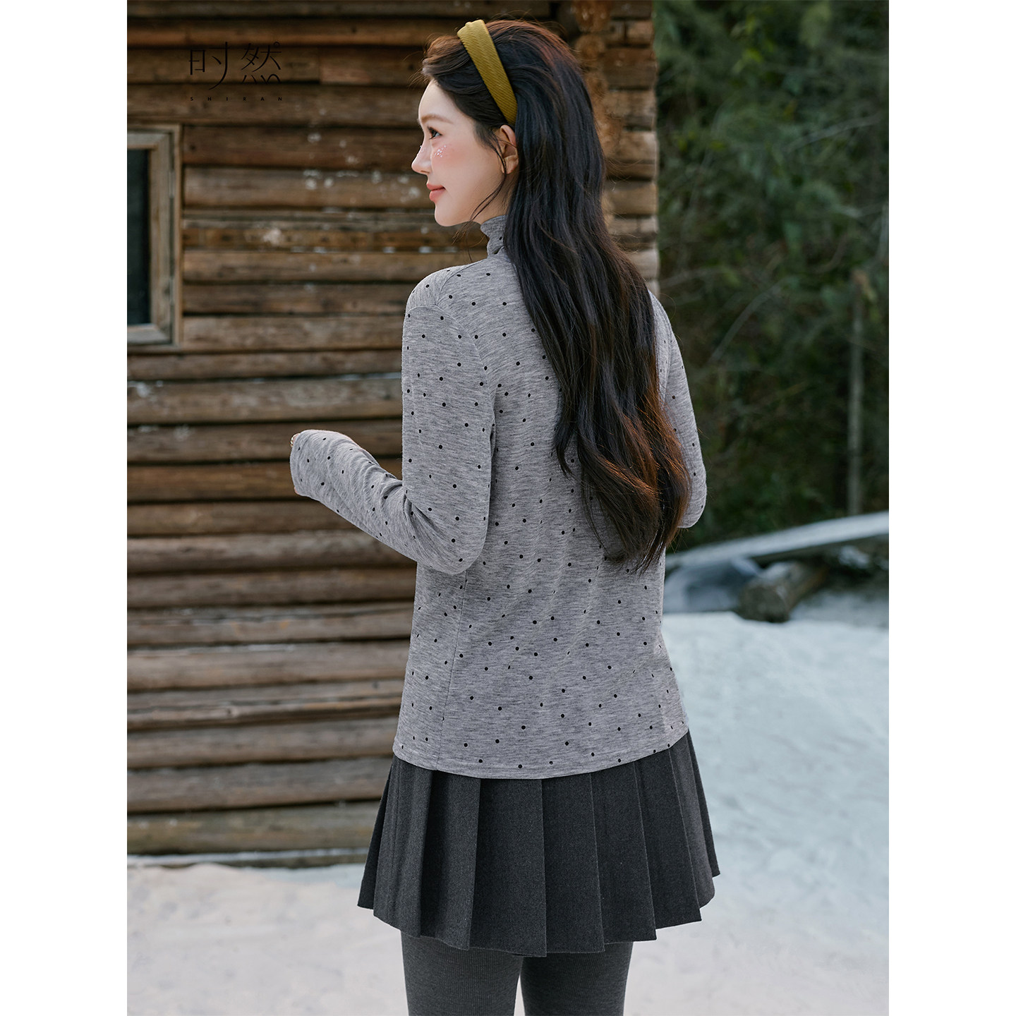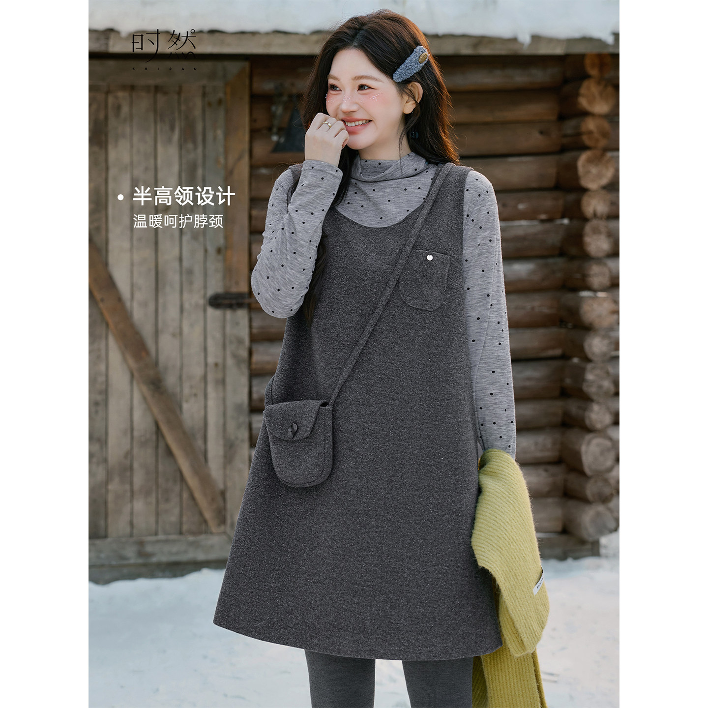 时然大码灰色打底衫冬季女装半高领T恤上衣保暖加厚微胖mm内搭新