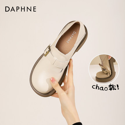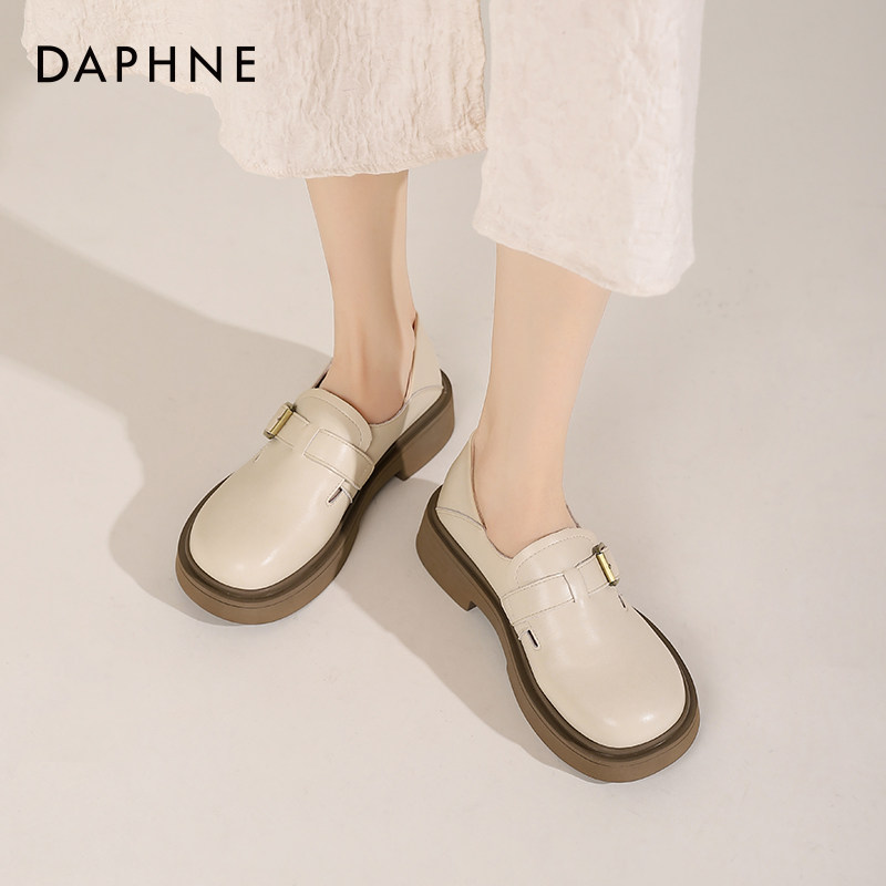 达芙妮乐福鞋女春秋百搭女鞋厚底白色小皮鞋一脚蹬勃肯鞋单鞋子女