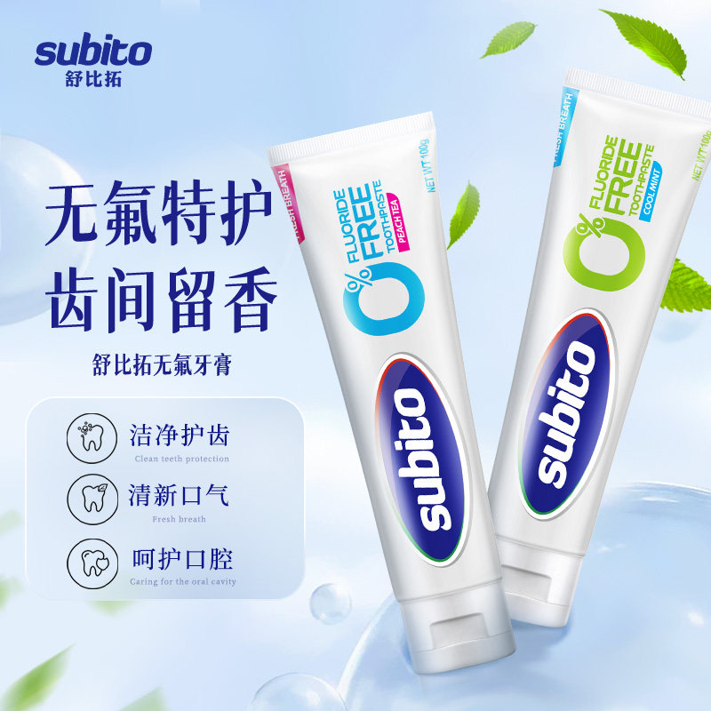 韩国进口舒比拓无氟牙膏成人春桃茶香100g清新口气缓解牙齿敏感