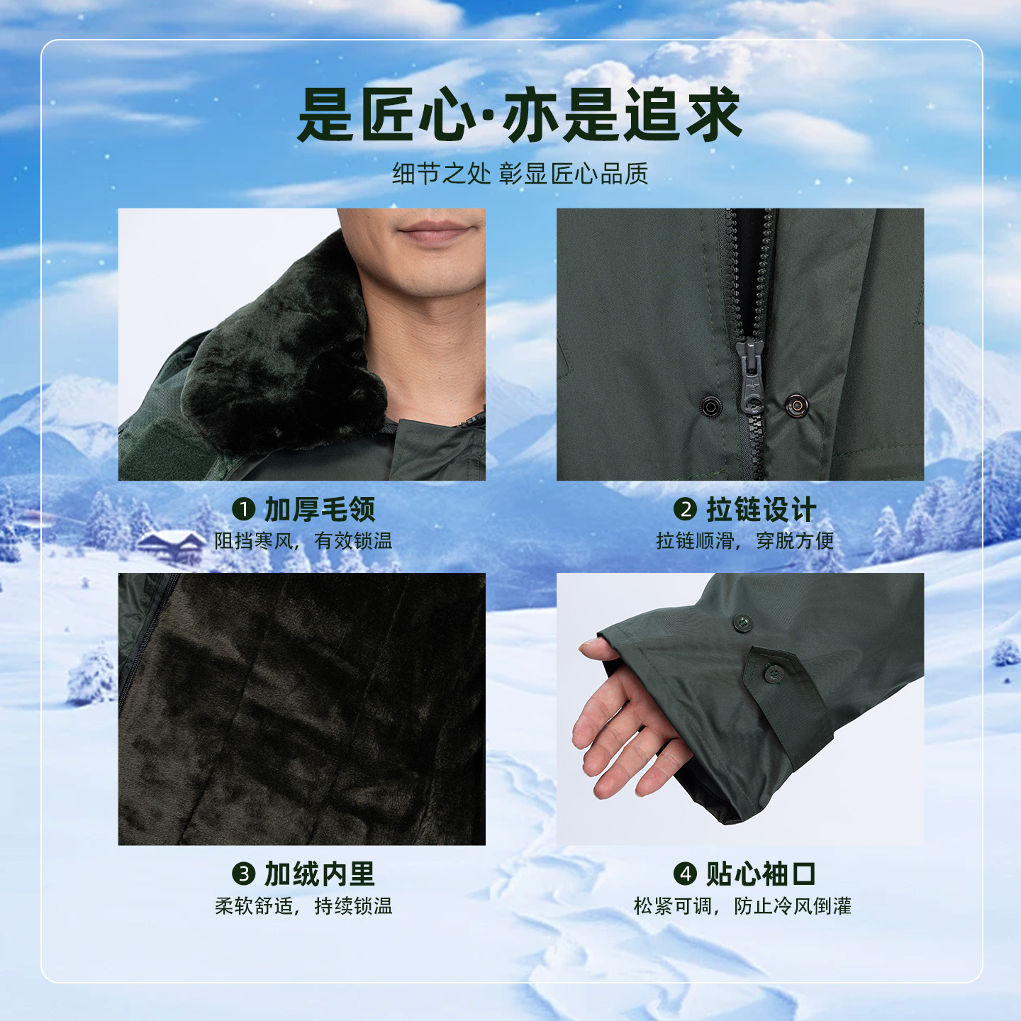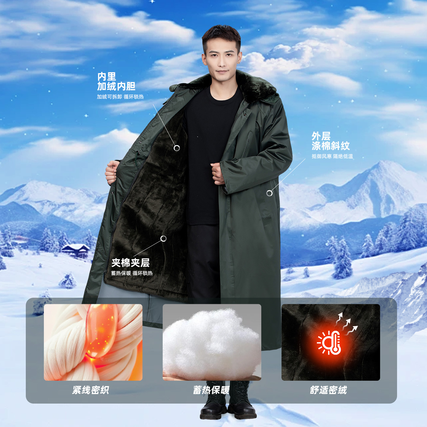 新款军棉大衣冬季加绒长款可拆棉袄冷库防寒衣耐磨耐穿保暖棉服男