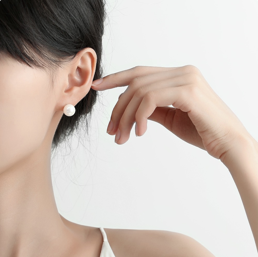 珍珠耳钉 极简轻奢高级感个性时尚正圆珍珠 S925银 耳饰 女款
