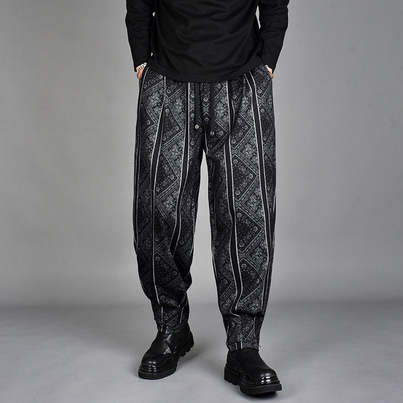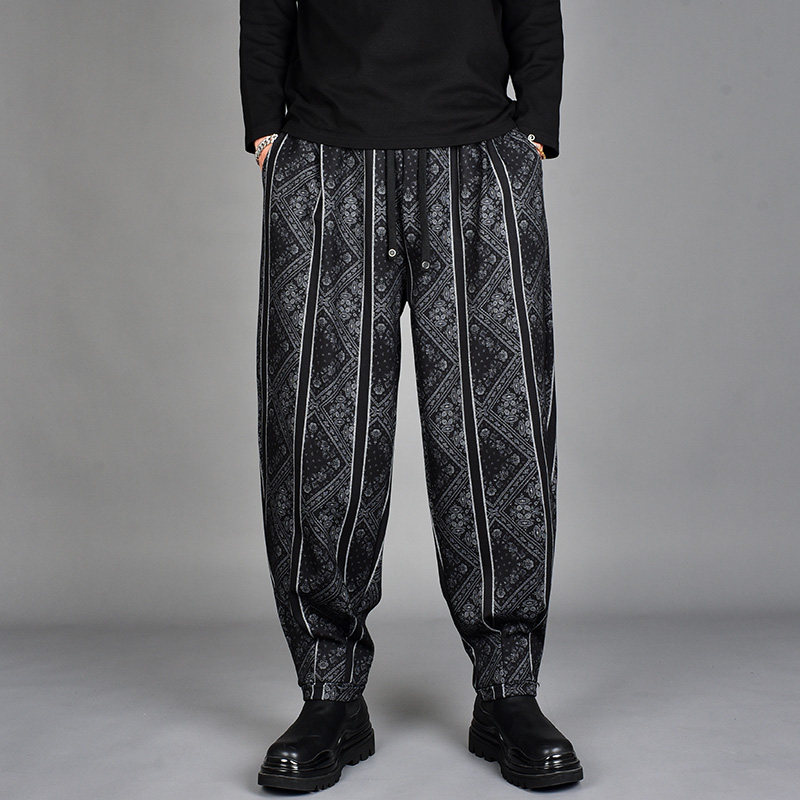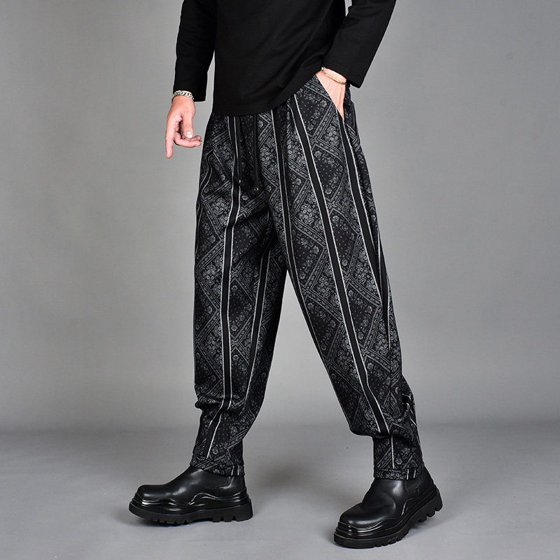 男撞色印花条纹宽松小脚哈伦裤