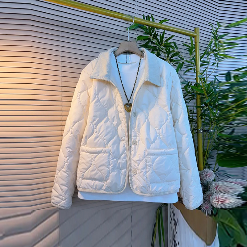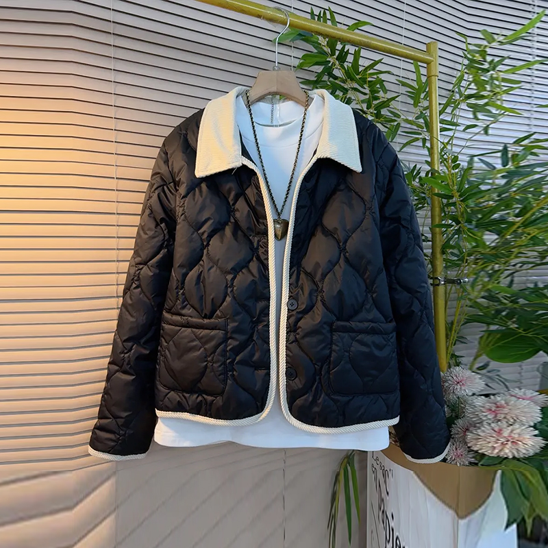 胖妹妹拼色翻领夹棉外套