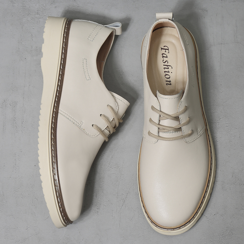 米白色皮鞋男新款真皮透气软皮软底韩版休闲鞋英伦商务男鞋西装鞋