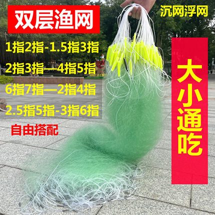 艾美芳双层粘网沉网浮网手工渔网挂网加重捕鱼网丝网粘网新款粘网
