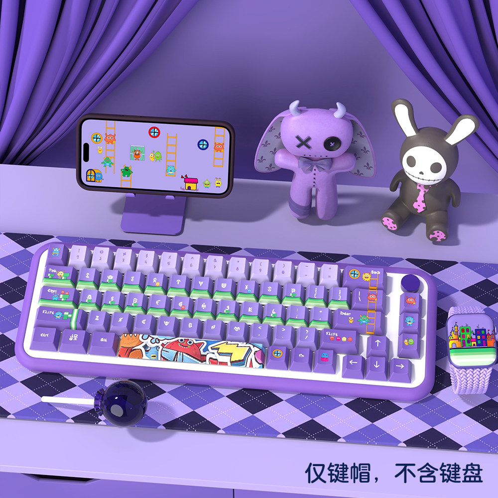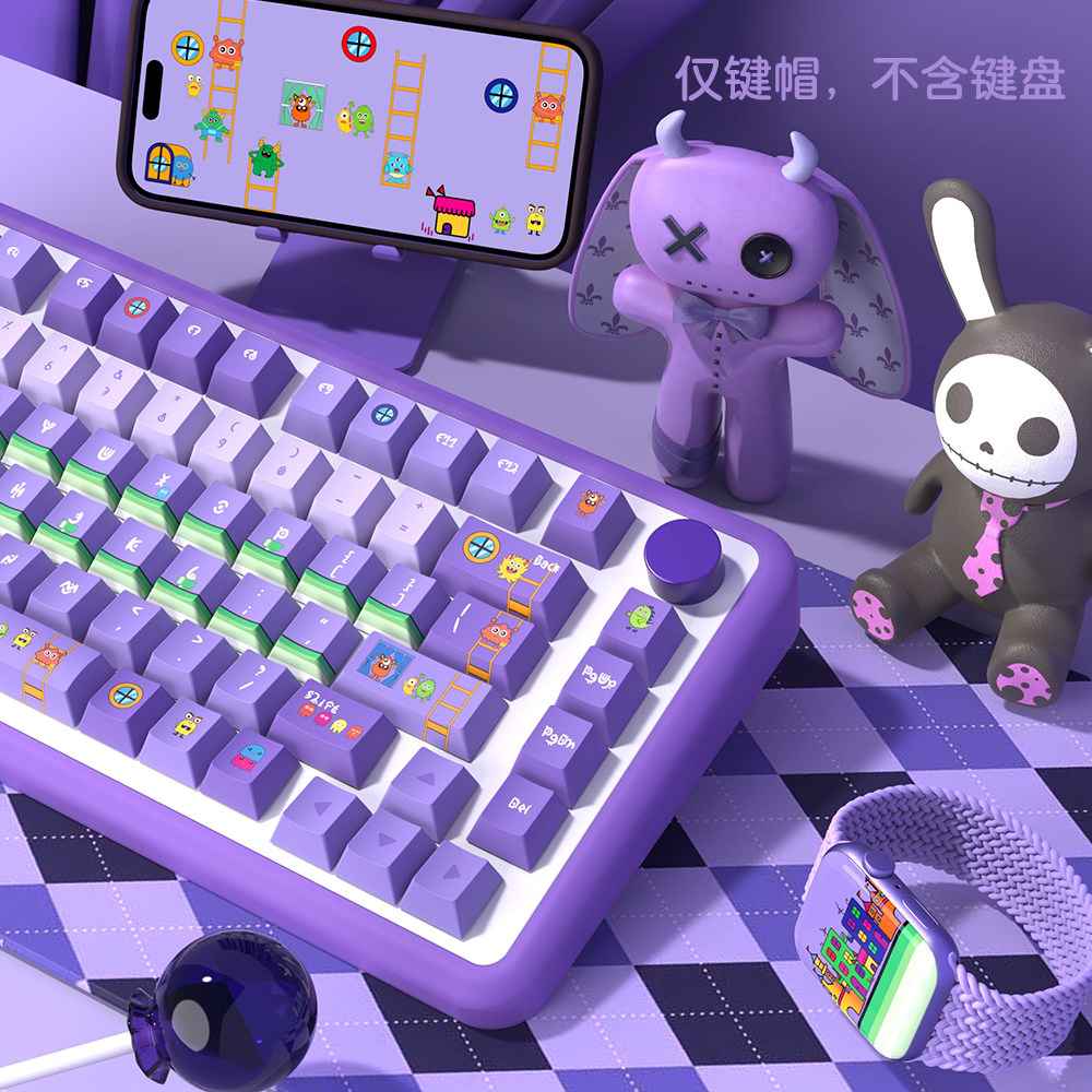 怪兽家族个性键帽 原厂高度PBT五面绿紫色 64 68 75 81 82键盘帽