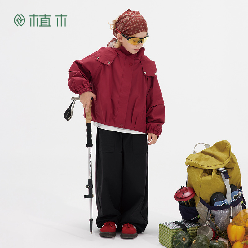 植木童装女童外套2025秋季新款中大童男童三防连帽上衣儿童外套